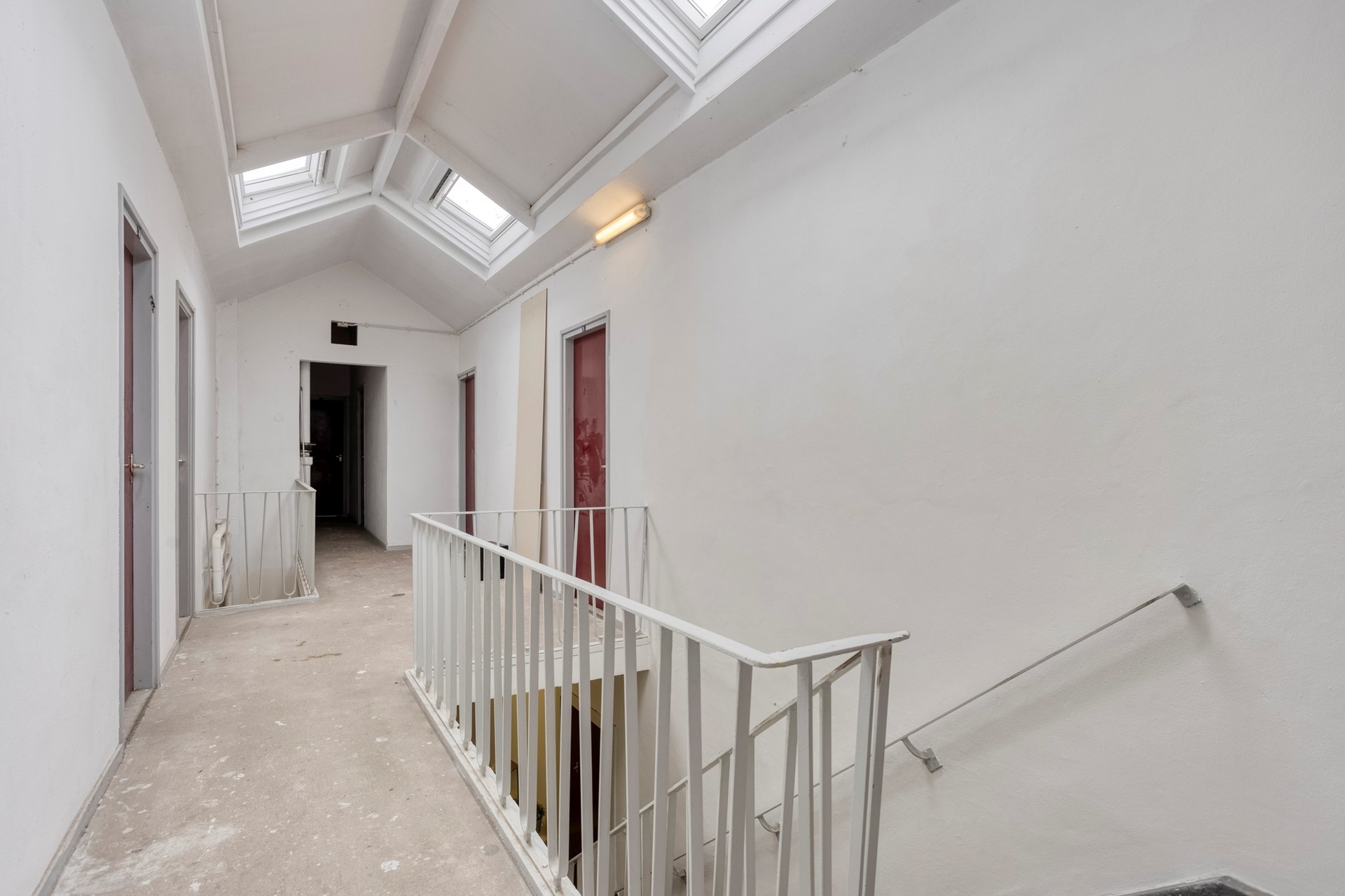 Indeling: centrale entree met bellen en brievenbussen, trappenhuis naar de etages.