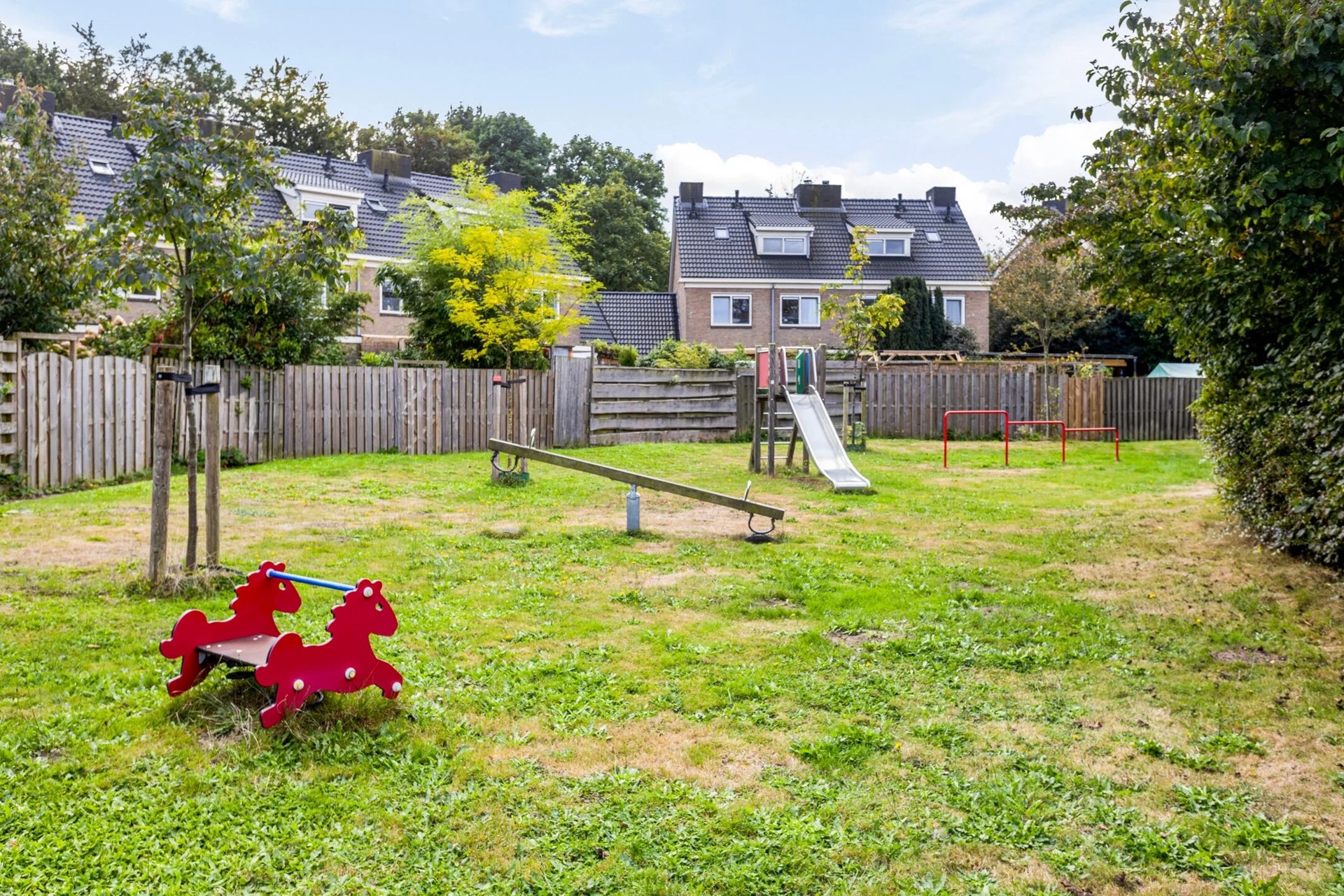 Het is goed om te weten dat deze achterom en dus de achtertuin direct grenst aan een achtergelegen royaal grasveld met bomen. Heerlijk rustig en groen uitzicht dus en heel fijn voor kinderen.