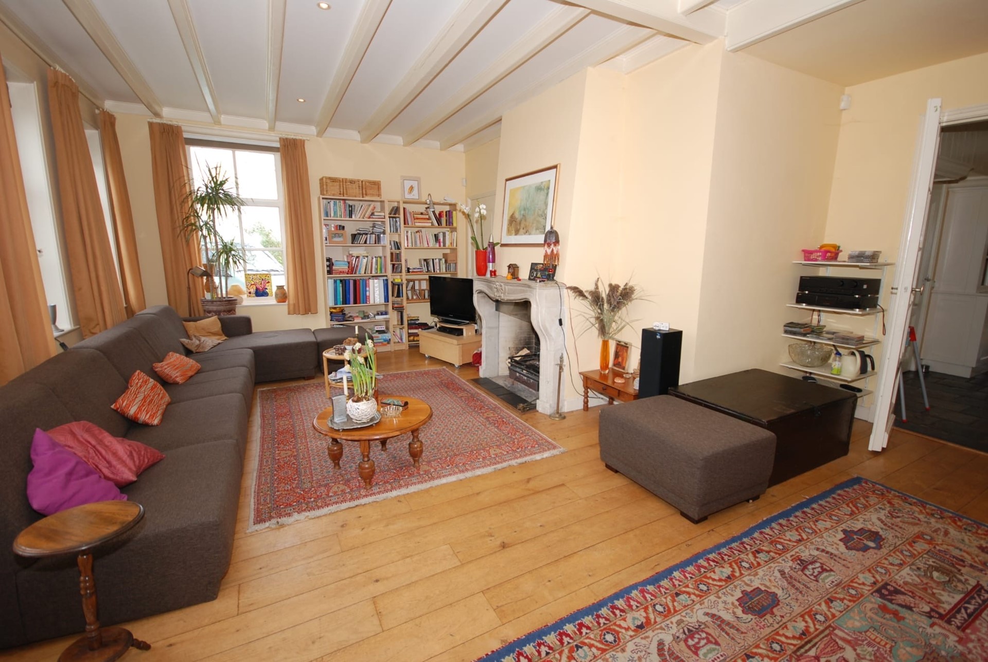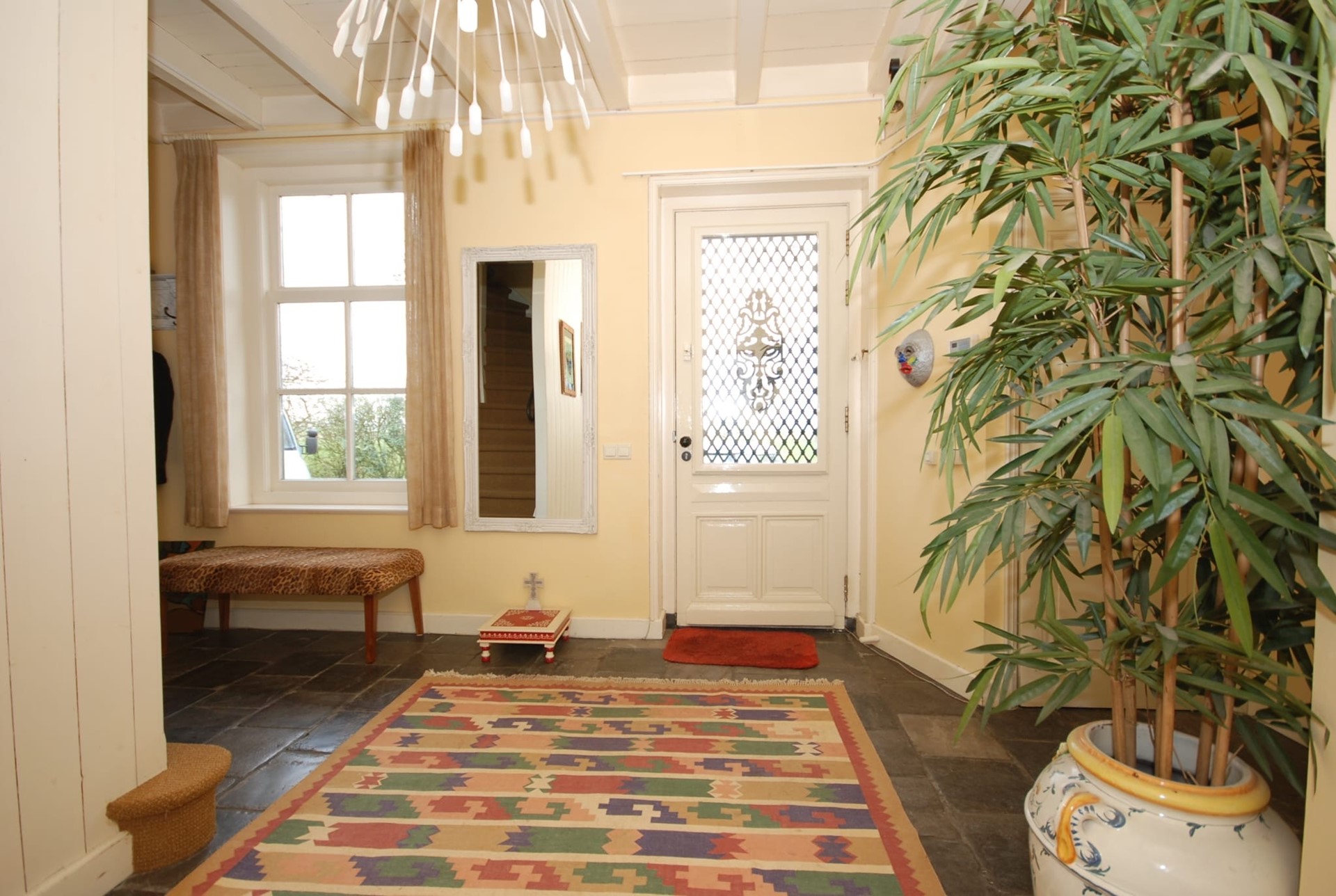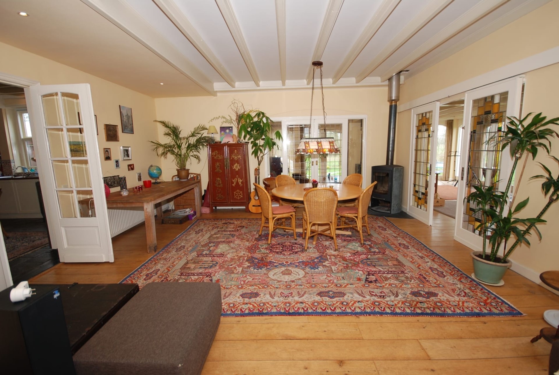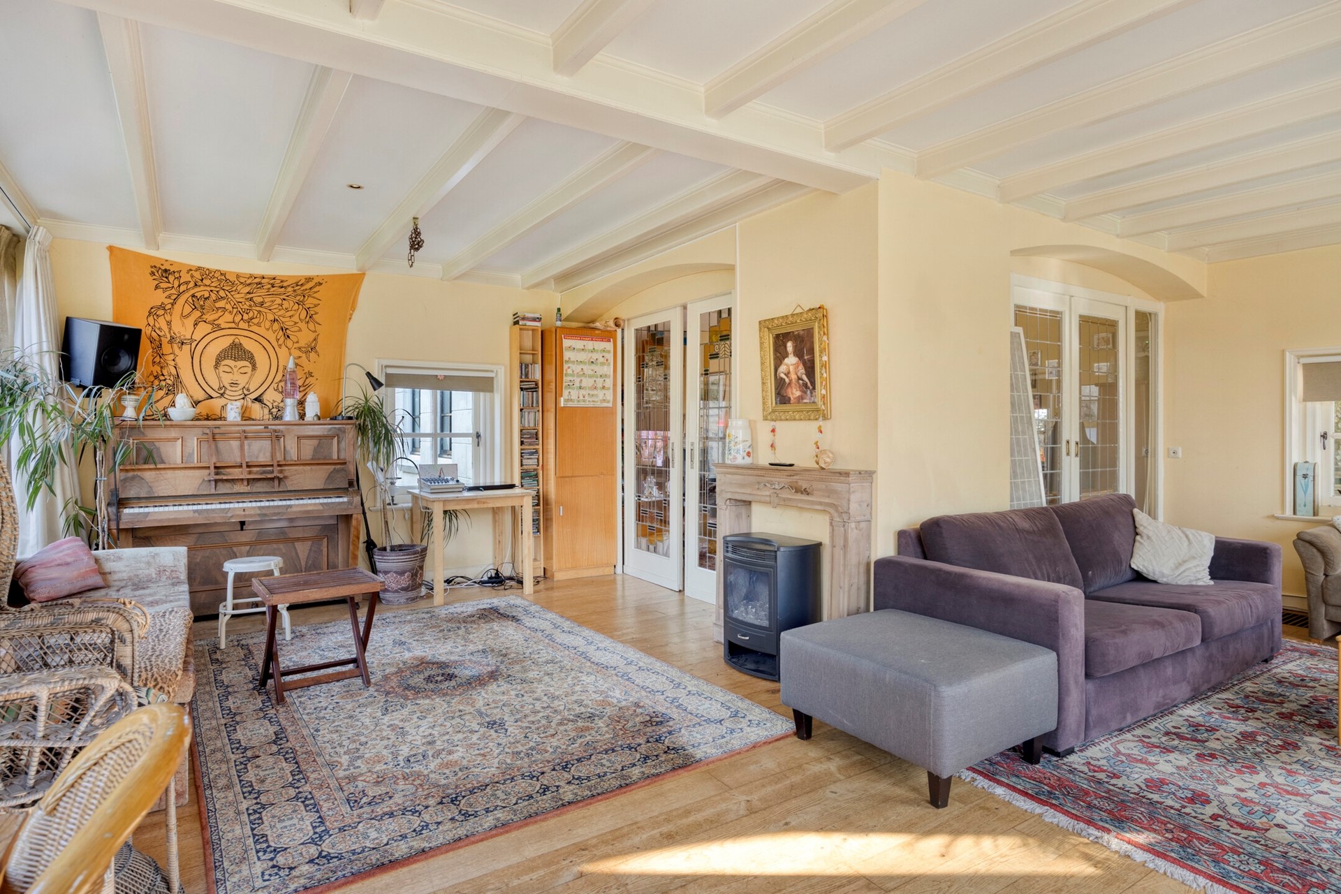 De indeling is als volgt: entree, royale hal met toilet en meterkast. Trap naar de eerste verdieping. Je komt binnen in de royale en gezellige woonkeuken. Aan de rechterhand tref je de royale, L-vormige living met open haard. Via de living bereik je de serre. Vanuit de serre bereik je middels meerdere dubbele openslaande deuren de tuin.
