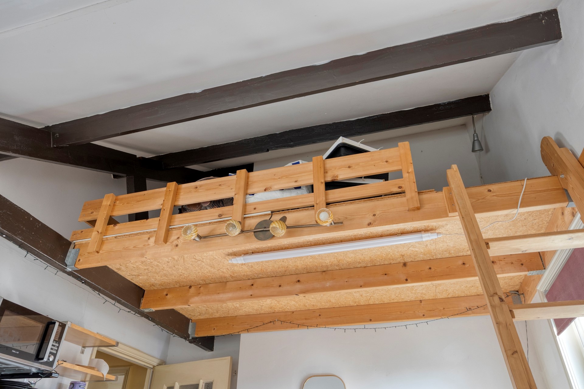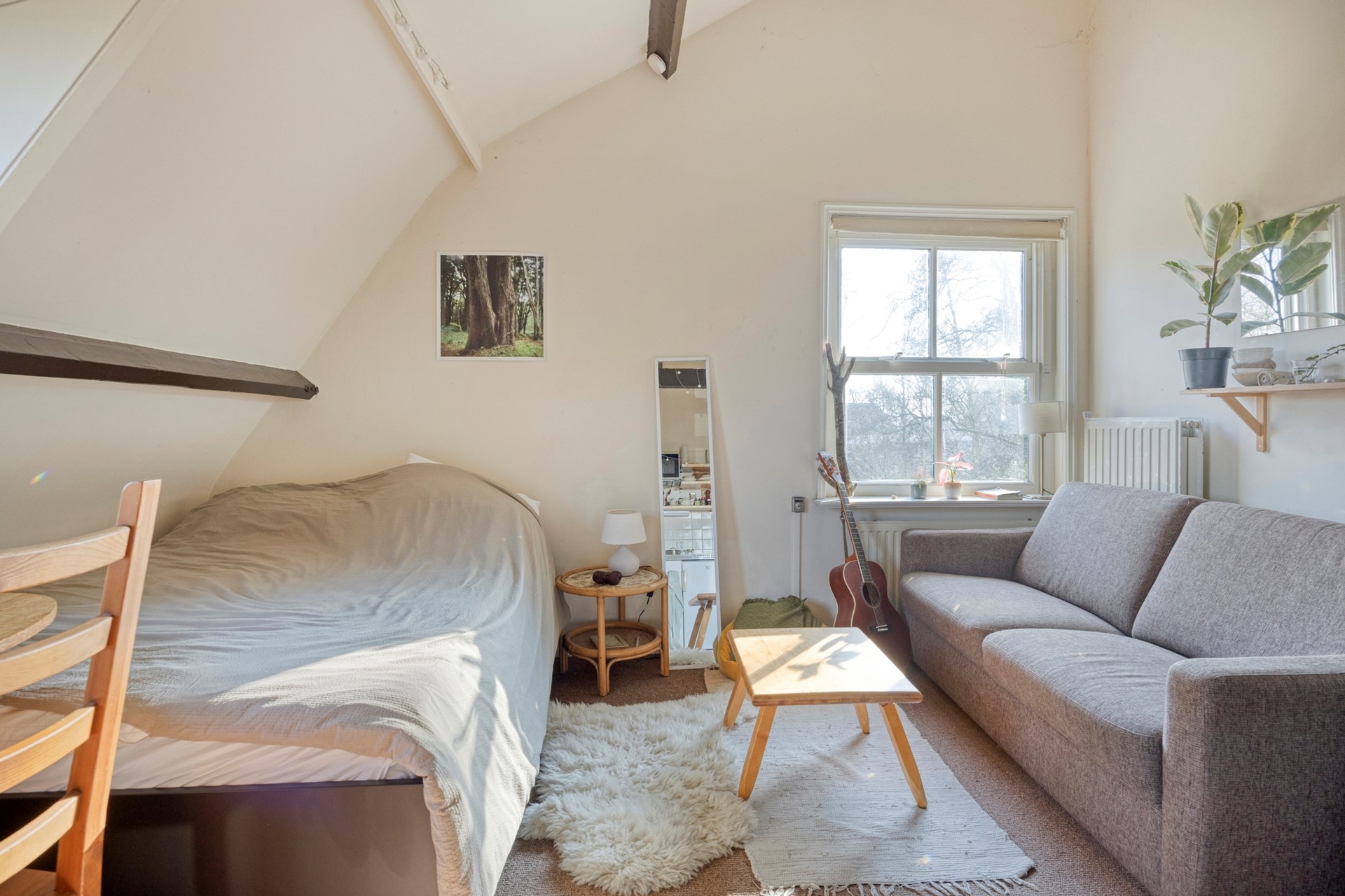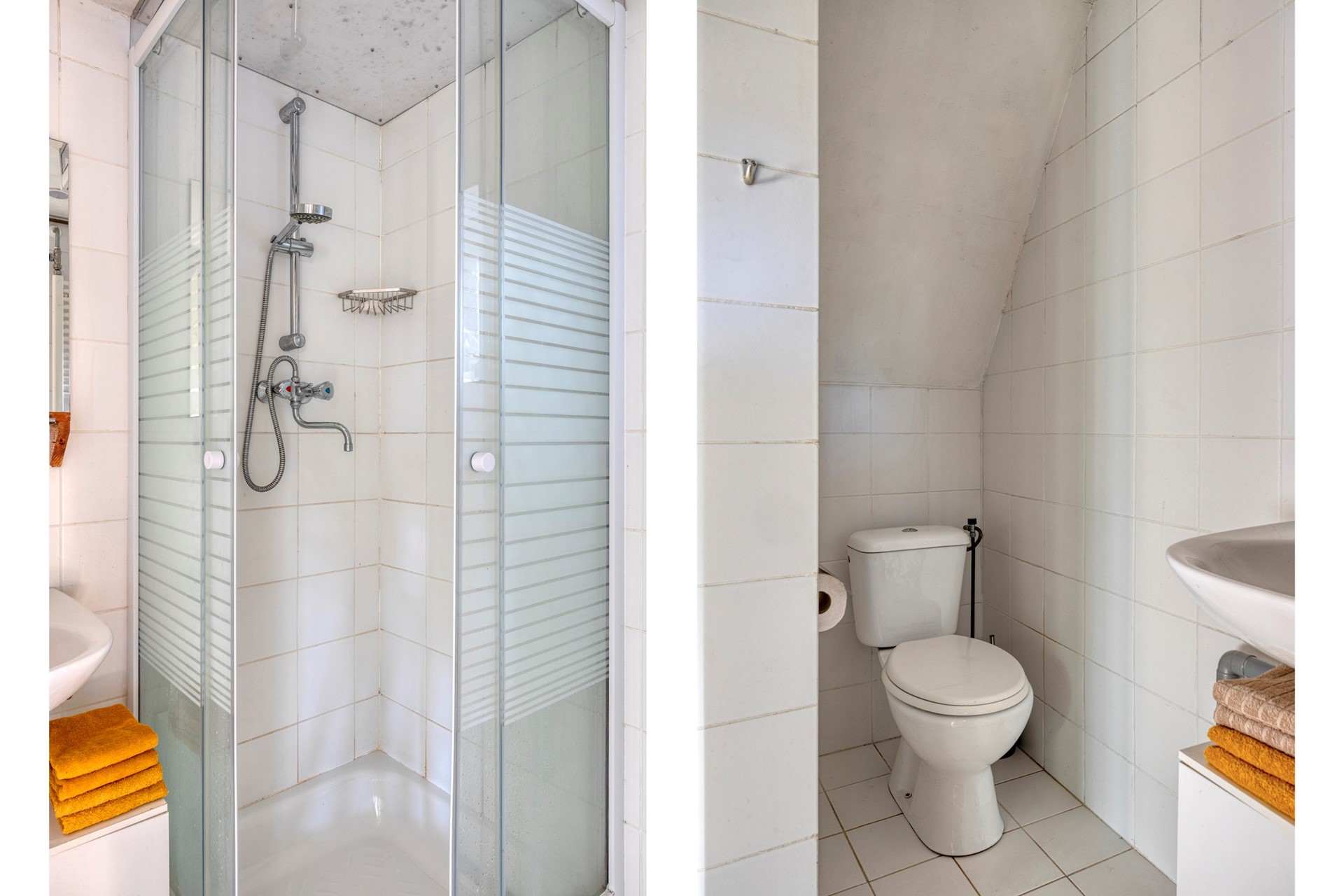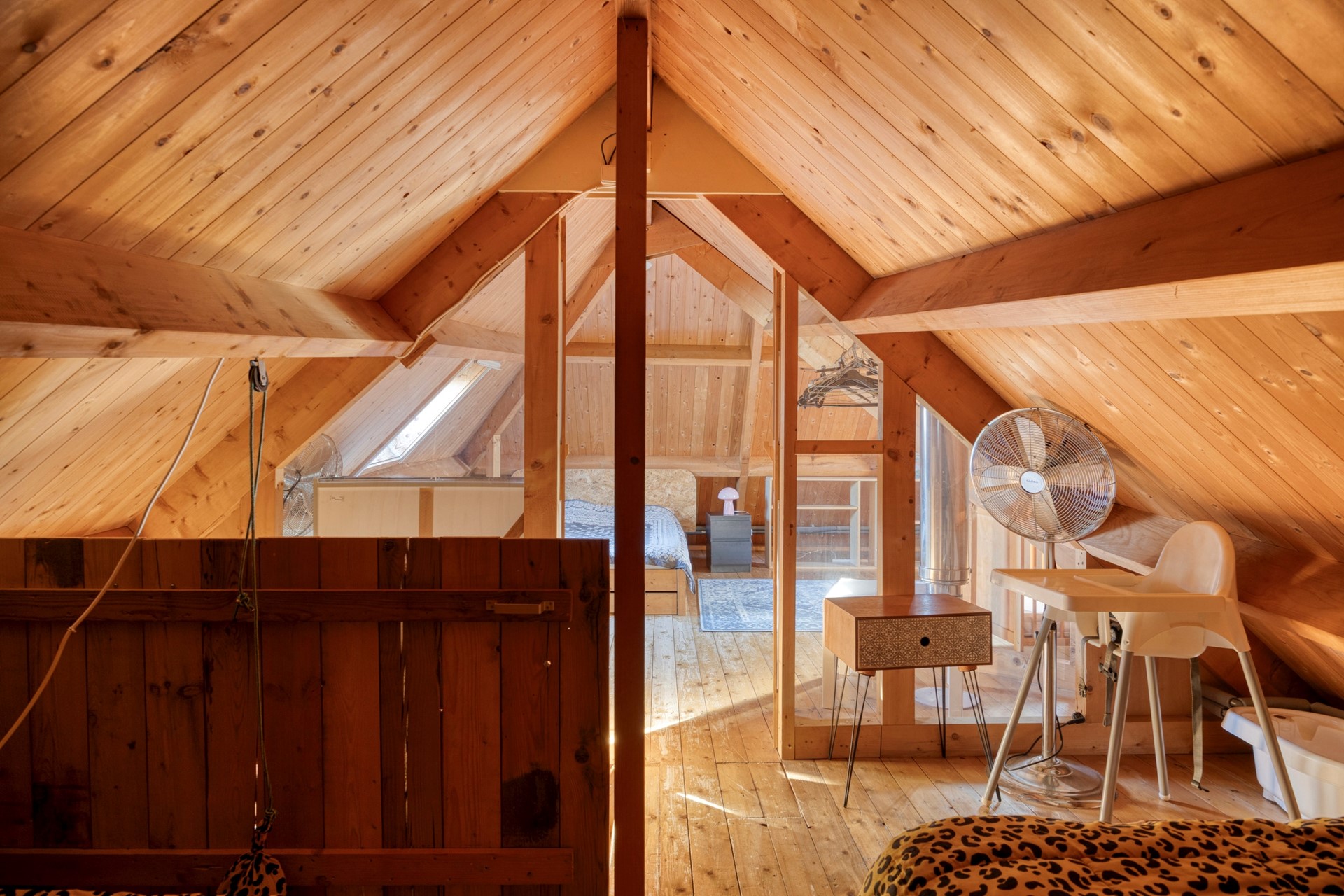Via een tweede gang bereik je de slaapkamer, een tweede slaapkamer en een badkamer met douche, toilet en wastafel. Het object is voorts nog voorzien van een vliering.