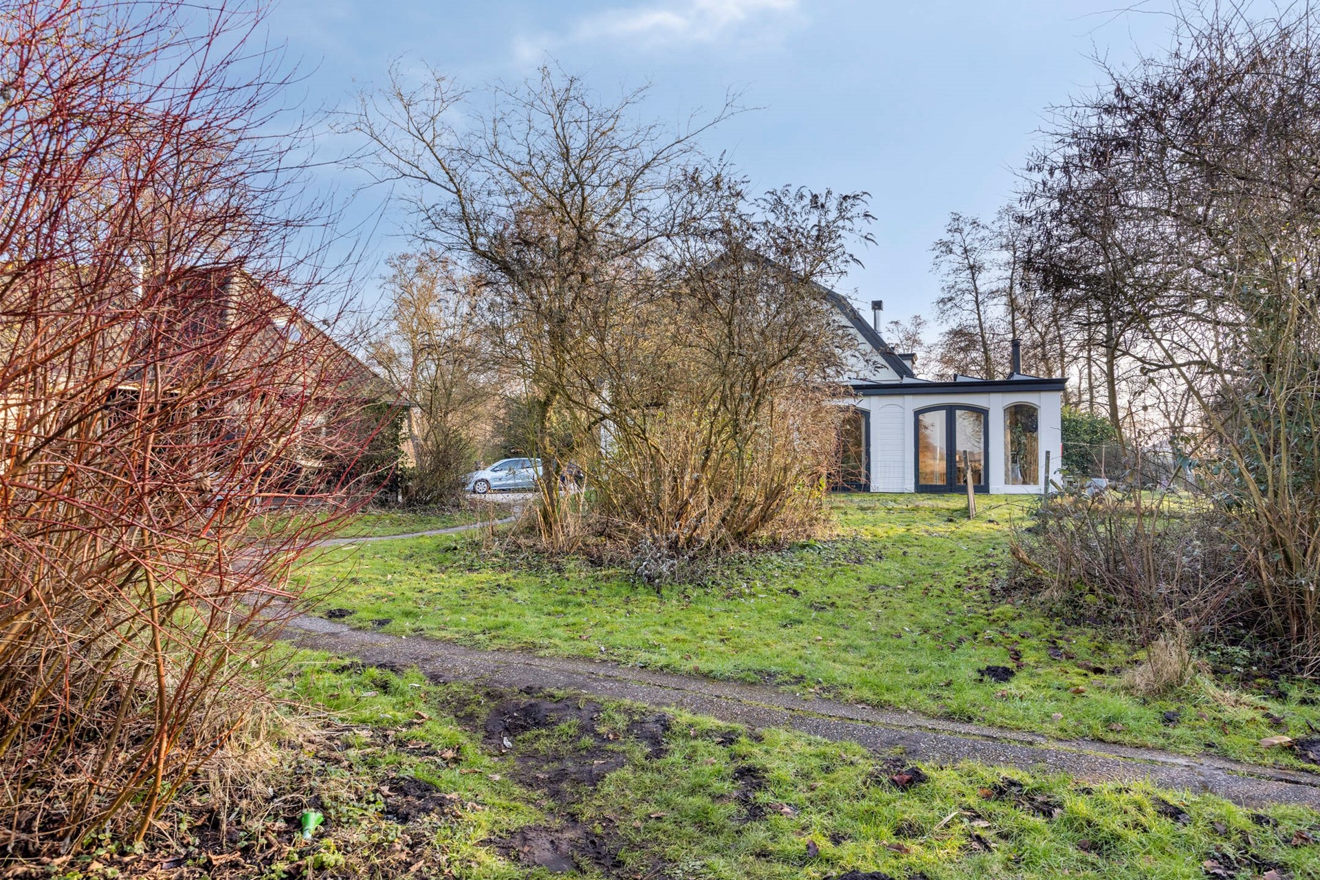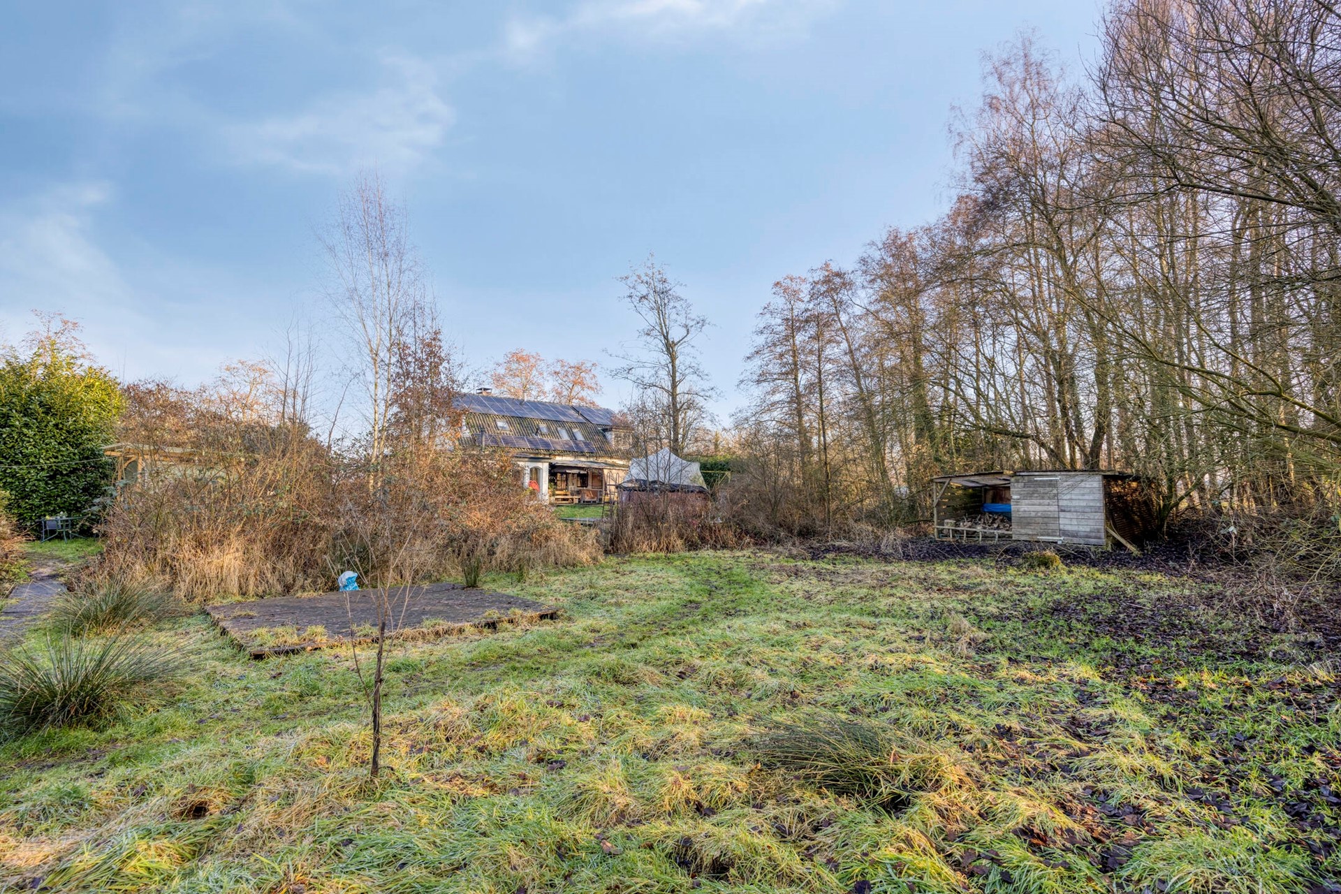 Het perceel bestaat uit 3 percelen en is een echt natuurterrein en bestaat onder andere uit de oprijlaan, oprit, parkeerterrein, een vijver, grasland, boomopstand, bosschages en een voormalig paardenweitje. Het perceel is vanaf de Kanaaldijk toegankelijk via een brug.
