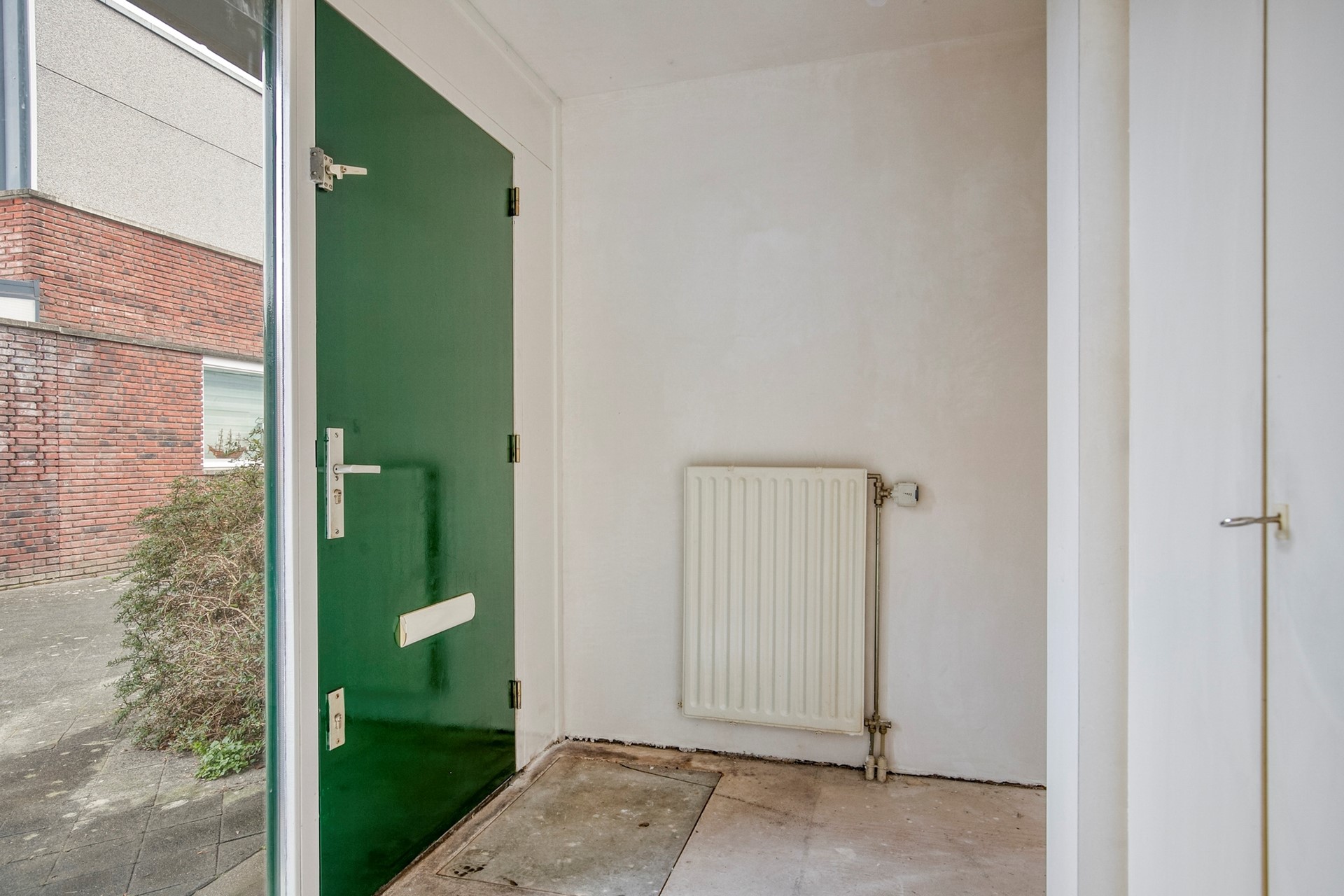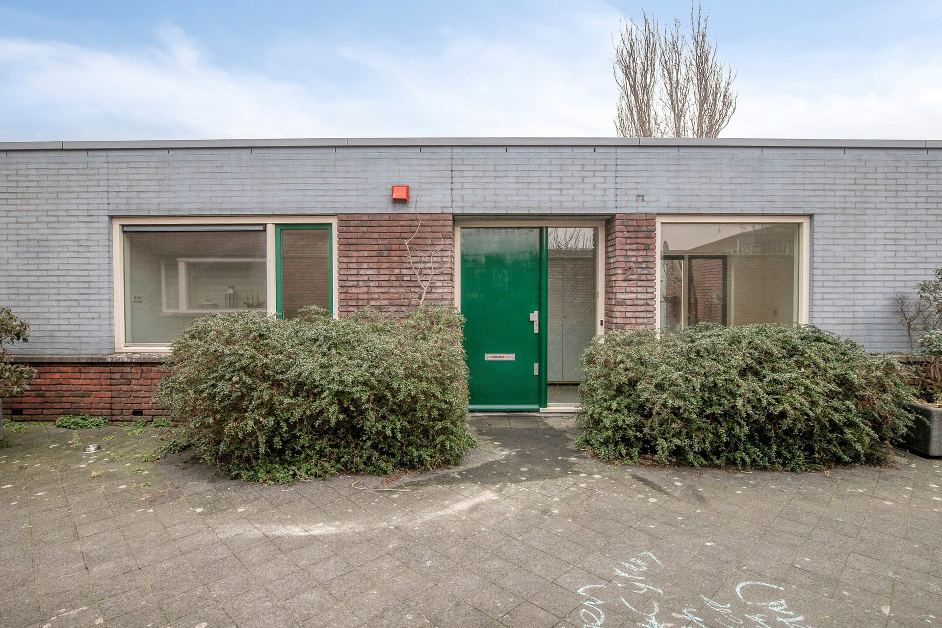 Je betreedt de woning via de overdekte entree. De hal geeft toegang tot de eerste slaapkamer, het toilet met fonteintje en de lichte woonkamer met open keuken.